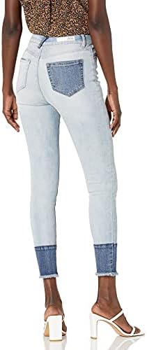 Two toned light wash skinny jean with dark wash pockets and bottom of legs